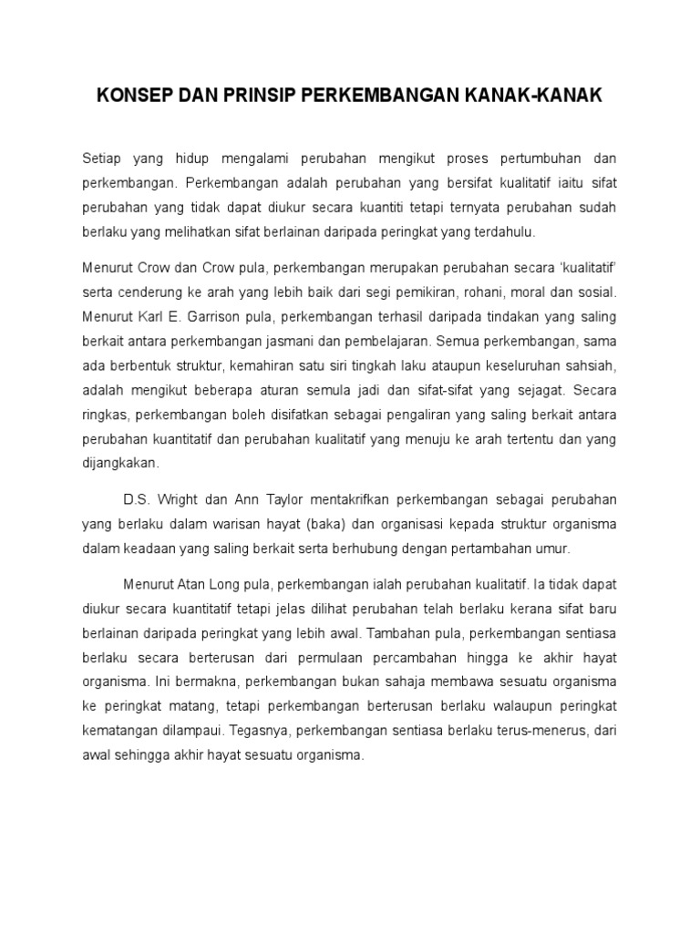Konsep Perkembangan Kanak-Kanak - Doc 2 0 Konsep Perkembangan Kanak Kanak Epiy Firdaus Academia Edu. Tahapan perkembangan manusia itu dijelaskan dalam Al-Quran surat Al-Hajj ayat 5 yang artinya sebagai berikut. Konsep pertumbuhan bermaksud perubahan yang boleh dinilai dan diukur secara kuantitatif dari satu peringkat ke satu peringkat perkembangan yang lain.